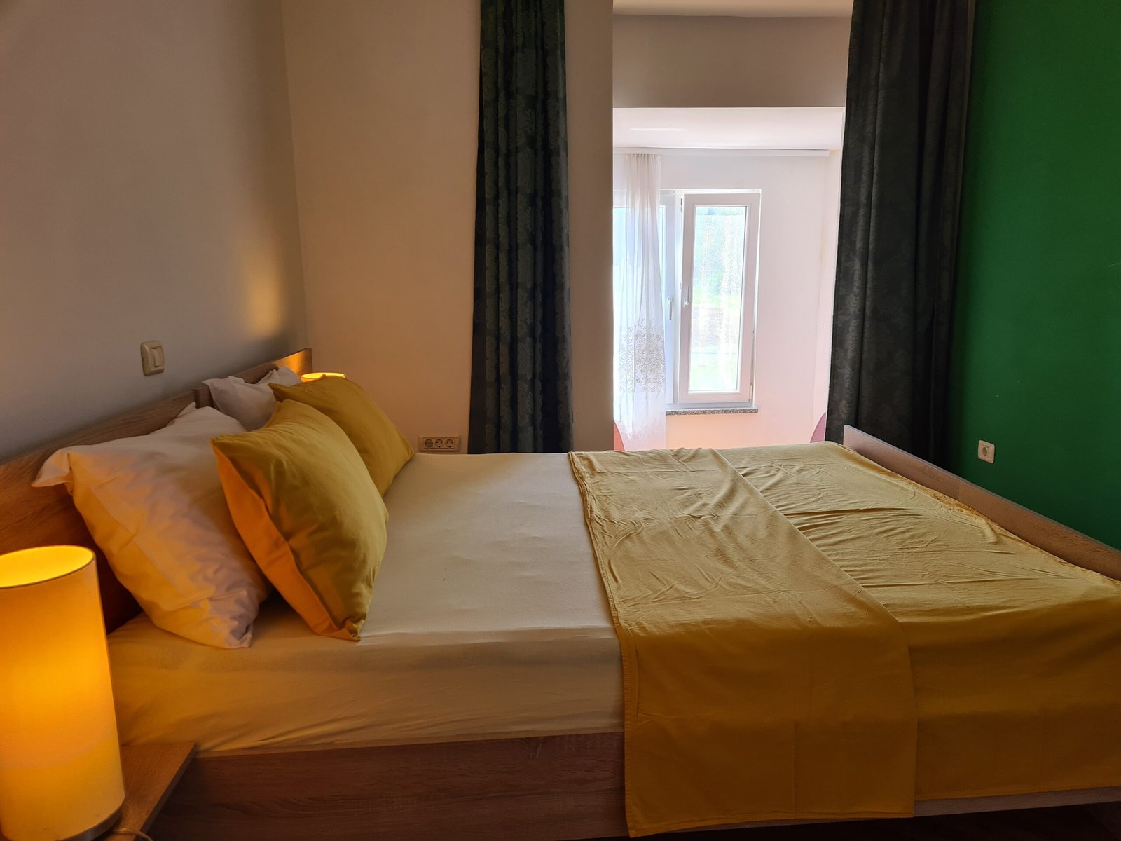 Ovaj četverosobni apartman (140 m2) nalazi se u prizemlju vile unutar kompleksa Šeherzada, s otvorenim dnevnim boravkom opremljenim kaučem za 2 osobe, TV-om, klima uređajem, kaminom, velikim stolom za blagovanje, kuhinja opremljena, pločom za kuhanje, pećnicom, perilicom suđa, hladnjakom i zamrzivačom u kuhinji. Svaka spavaća soba ima bračni krevet (160/200 cm). Kupaonica ima jacuzzi kadu, ali ima i odvojeni tuš i odvojen WC. Bazenu se može izravno pristupiti iz dnevnog boravka, a pod natkrivenom terasom (20m2) nude se dodatni vrtni namještaj i roštilj. Na raspolaganju su besplatni internet i parking. Kompleks apartmana Šeherzada se sastoji od 1 samostojeće vile te dvije dodatne kuće, koje su smještene u mirnom i tihom mjestu daleko od prometne buke, s velikim dvorištem od 5000m2 okruženih lijepom, divljom i netaknutom prirodom, idealnom za opuštanje. Unutar kompleksa se nalazi veliki bazen sa morskom vodom i manji, zatvoreni sa toplom vodom i masažnim mlaznicama. U sklopu kompleksa je teretana, kuhinja sa ponudom doručka ili drugih obroka po narudžbi, te razna igrališta za ugodan boravak.