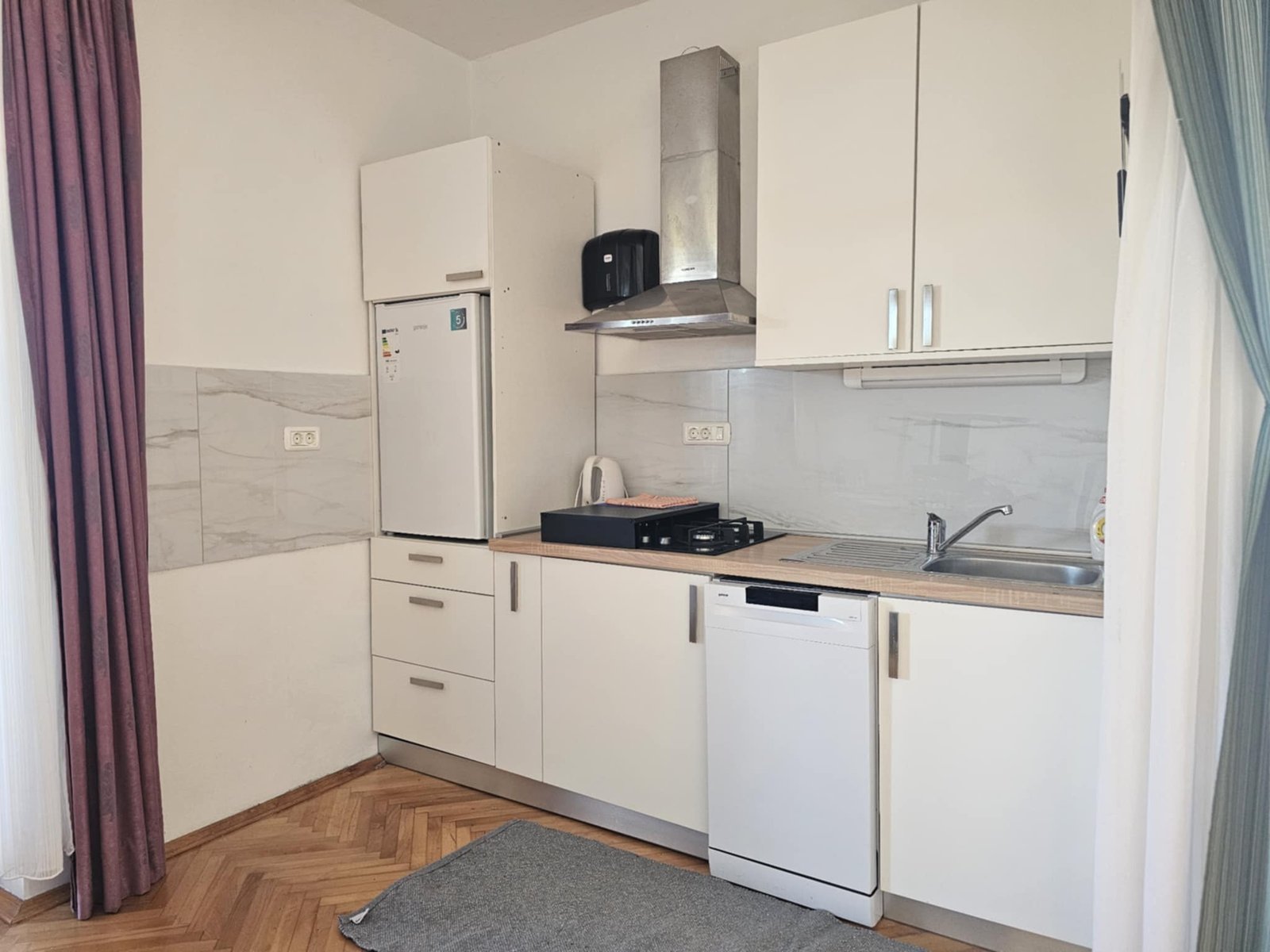 This one-bedroom apartment is located on the first floor of the Villa within the Seherezada housing complex. It has an open plan living furnished with a sofa bed (for two), TV, aircon, dining table, and a kitchen with a stove, fridge, and freezer. The bedroom has a queen size bed (160/200 cm). The bathroom is featured with a shower and a toilette. The balcony has a beautiful view of surrounding nature and the pool. Free Internet and parking are available. Bed linen and towels are included in the price. Seherezada housing complex consists of one villa and two additional houses located in a quiet and peaceful area away from traffic noise, with a large 5000m2 yard surrounded by beautiful, wild and unspoiled nature, ideal for relaxation. Available within the complex is a gym, a basketball/volleyball court and children’s playground, an outside kitchen with a possibility of ordering breakfast and other meals. Also, the complex has a big swimming pool with sea water and a closed heated spa.