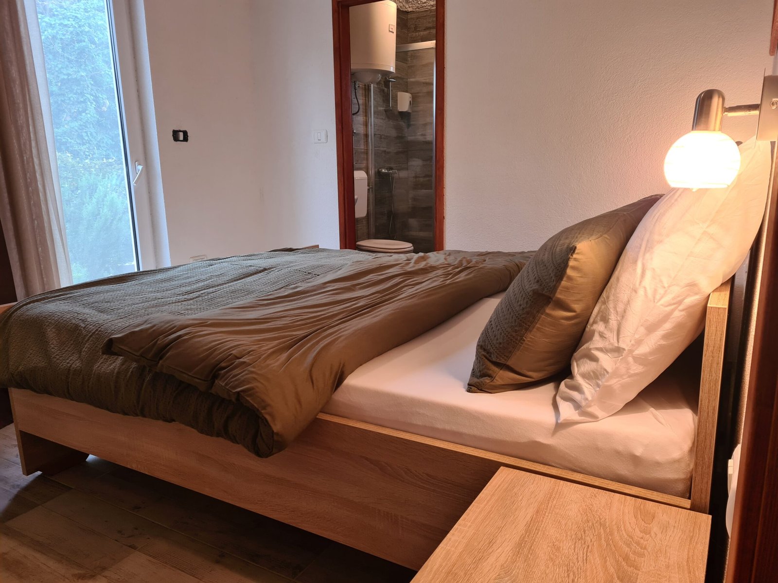 This one-bedroom apartment is located on the first floor of the Villa within the Seherezada housing complex. It has an open plan living furnished with a sofa bed (for two), TV, aircon, dining table, and a kitchen with a stove, fridge, and freezer. The bedroom has a queen size bed (160/200 cm). The bathroom is featured with a shower and a toilette. The balcony has a beautiful view of surrounding nature and the pool. Free Internet and parking are available. Bed linen and towels are included in the price. Seherezada housing complex consists of one villa and three additional houses located in a quiet and peaceful area away from traffic noise, with a large 5.000m2 yard surrounded by beautiful, wild and unspoiled nature, ideal for relaxation. Available within the complex is a gym, a basketball/volleyball court and children’s playground, an outside kitchen with a possibility of ordering breakfast and other meals. Also, the complex has a big swimming pool with sea water and a closed heated spa.
