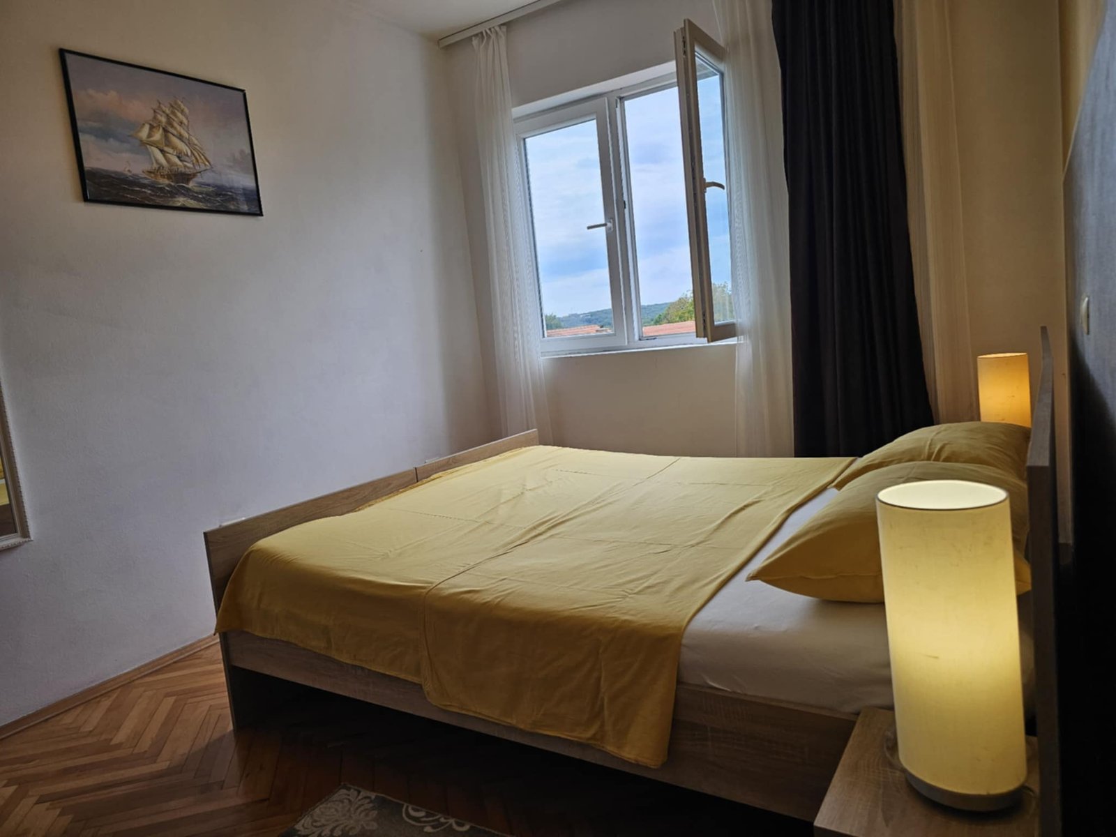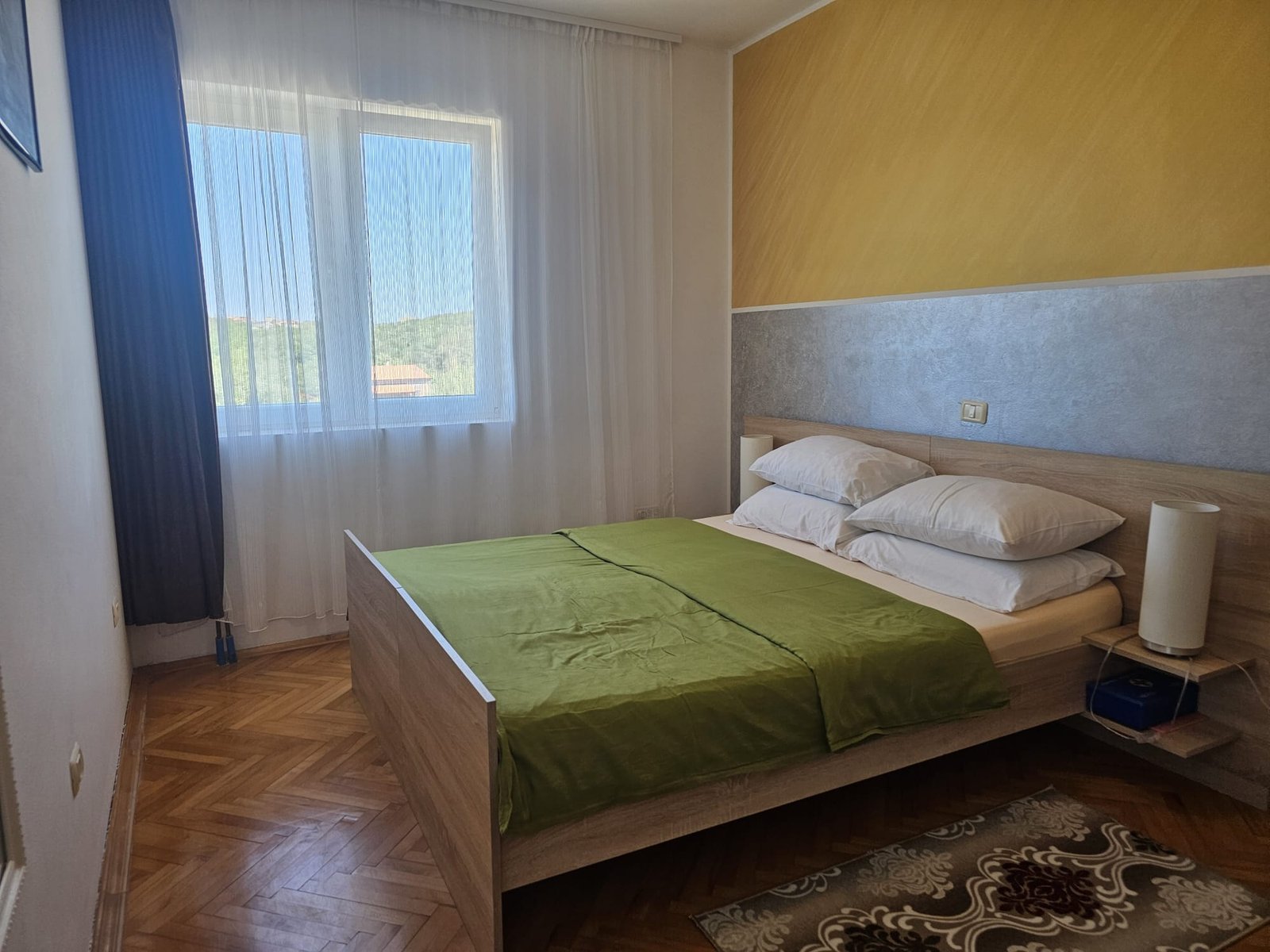 Questo appartamento per due persone ha una superficie di 80m2 e si trova al primo piano della Villa all interno del complesso Šeherezada con soggiorno munito di divano estraibile a 2 posti, Tv, clima, tavolo da cucina e una cucina munita di piano cottura, frigo, e lavapiatti. Una camera da letto che ha due letti da una persona (90/190cm) e l altra camera ha un letto matrimoniale (160/200cm). Tutte e due le camere hanno l accesso al balcone. Il balcone offre una bellissima veduta panoramica sulla piscina e sulle fattorie adiacenti che offrono una prospettiva sulla vita in natura. I due bagni sono muniti di doccia e WC. Sono a disposizione Internet gratis e parcheggio. Nel prezzo sono inclusi le lenzuola e gli asciugamani e lo sgrassatore per i piatti. Il complesso di appartamenti Šeherezada e composto da una Villa e tre case adiacenti. Le quali sono situate in un posto silenzioso e calmo lontano dal caos cittadino, ideale per rilassarsi. Nel complesso si trovano una grande piscina con acqua salmastra e una piu piccola al coperto con acqua calda e idromassaggio. Nel complesso c e una palestra, una cucina con possibilita di colazione e altri pasti su ordinazione e vari campi gioco per un soggiorno confortevole.